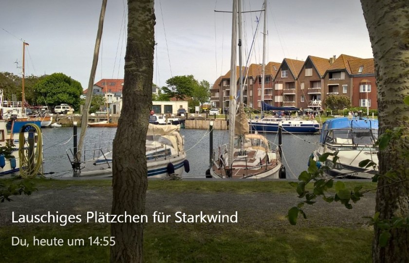 Es half nichts, ich musste bei starker Schauerböe raus, die Leinen verkürzen und habe zur Sicherheit noch weitere ausgebracht. Heute habe ich verlegt.
