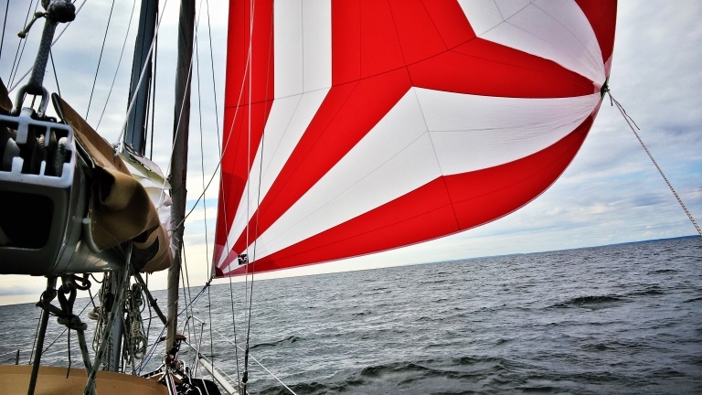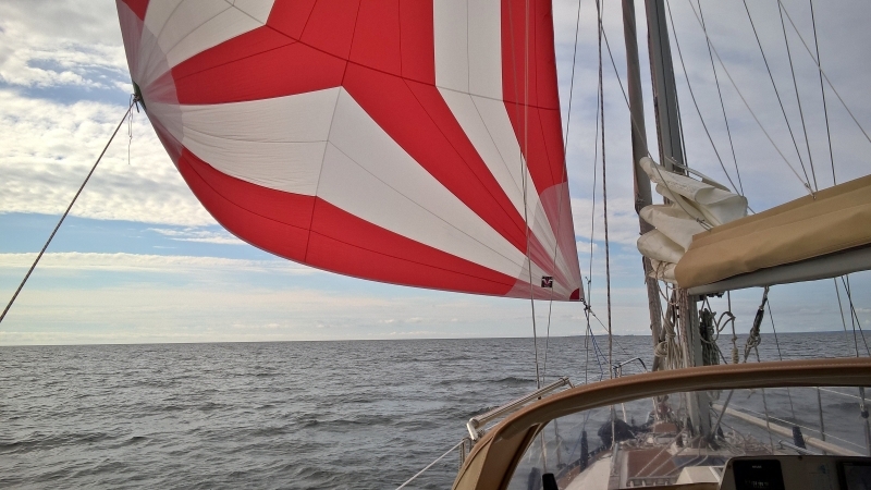 Sofort nach dem Start in Agön konnten wir heute den Genakker setzen.