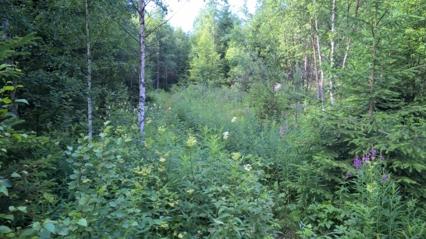 Zunächst durch Wiesengelände, dann Wald und dann immer höher hinauf.