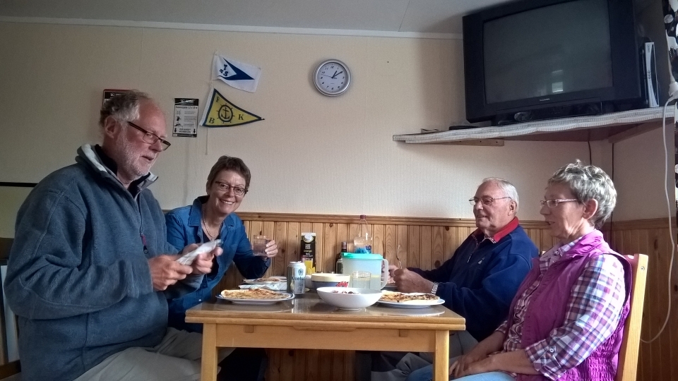 Wir haben gemütlich zusammen im Bootshaus gesessen mit Blick auf den verregneten Liegeplatz von Swantje.