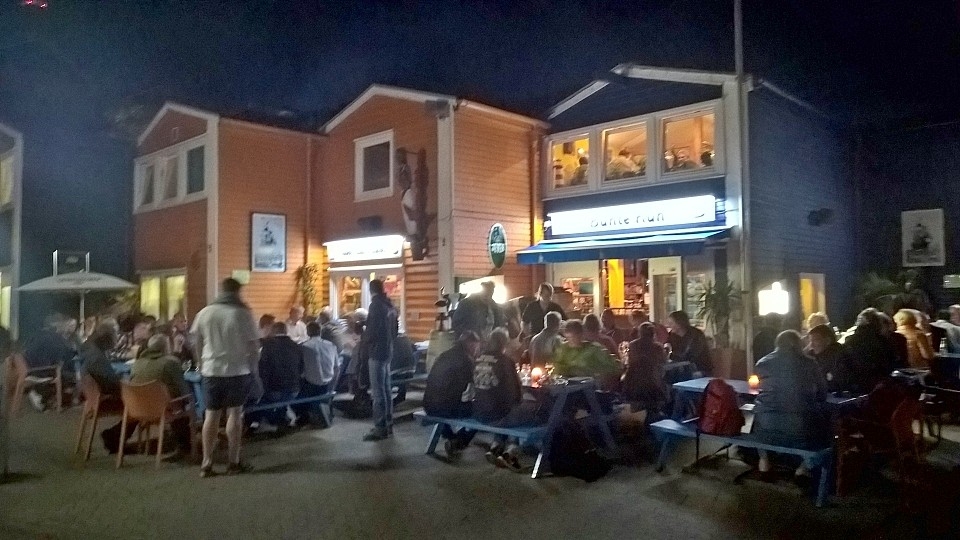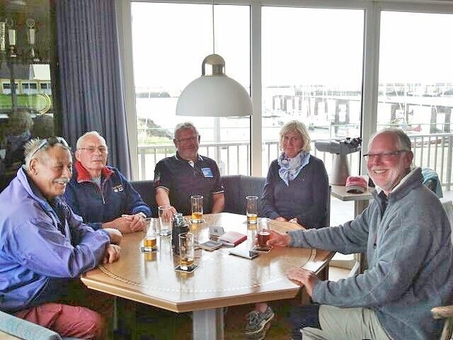 Gestern am Spätnachmittag konnten wir uns im Clubhaus des WSCH noch bei Detlef für die freundliche Aufnahme bedanken – im Beisein der Besatzungen von Boreas und Desperado.