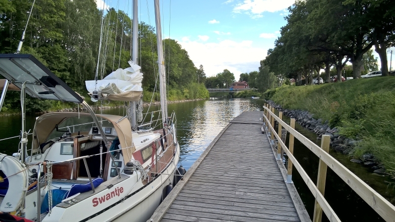 2 Brücken sind beweglich und öffnen alle Stunde. Wenn man von Norden kommt öffnet die ÄLMSTABRON jeweils zur vollen Stunde. Man erreicht dann bei 5 knots automatisch die 2. Brücke zur folgenden halben Stunde, die dann ebenfalls öffnet.