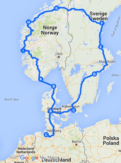 Höhe Sundsvall in Schweden soll es – nachdem wir Höga-Kusten besucht haben – hinübergehen nach Trondheim in Norwegen, um dann über Alesund, Bergen, Kristiansand den Bogen zu schließen.