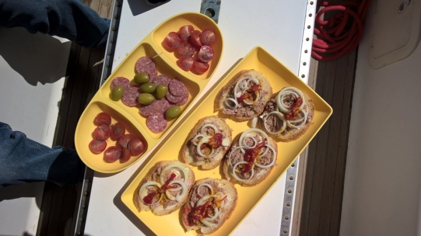 Wir lassen Messina hinter uns, tanken kurz an einem Anleger, umrunden die Nordspirze von Sizilien mit dem markanten Gittermast, verspeisen die leckeren Horsd’oeuvres und setzen znseren Kurs gen Südspitze Sardinien ab.