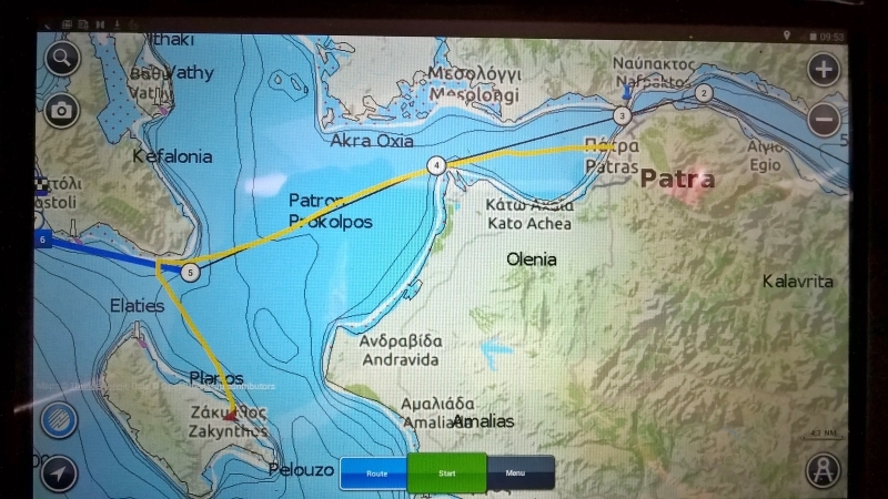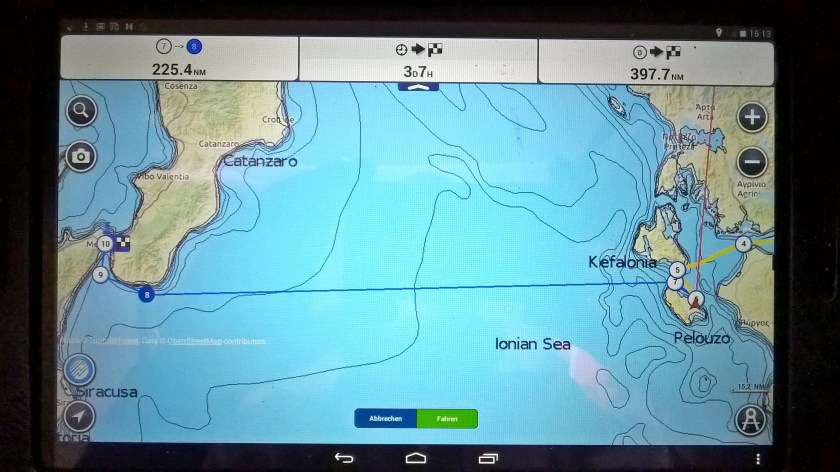 Gestern gegen 10:00 gestartet, ging es von Patras aus bei zunächst spiegelglatter See rasch voran.