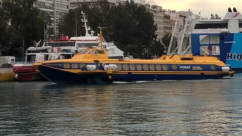 Hier warten wir auf das Tragflügelboot, welches uns um 17:00 zum Hafen Portoheli bringen soll.