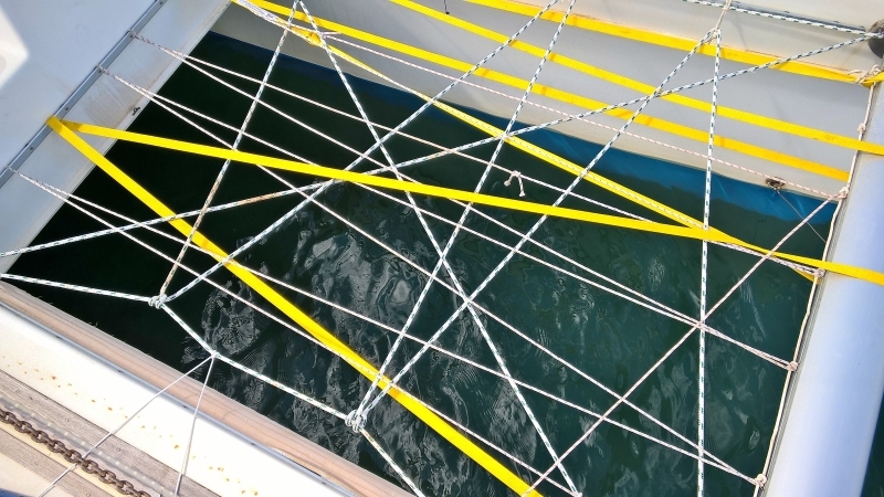 Am Boot gibt es auch immer was zu tun. Heute haben wir Makrameearbeiten am Vorschiff beendet (eine Fallsicherung für das weggerissene Netz.)