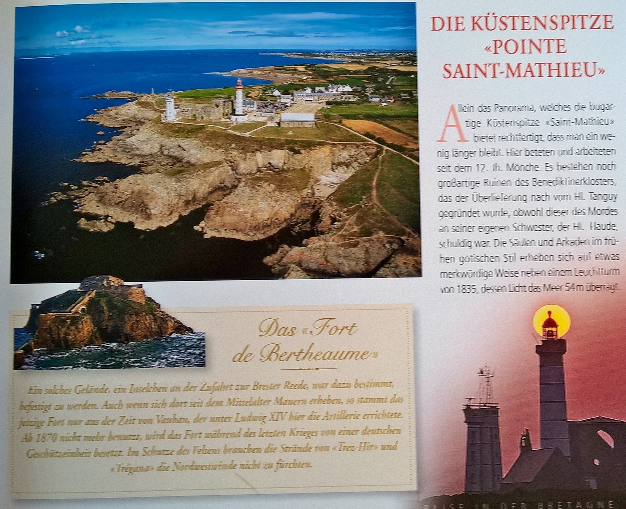 Kommend von Brest werden wir die Küstenspitze „POINTE SAINT MATHIEU“ runden um danach in den „CHENAL DU FOUR“ einzubiegen, der zwischen den Inseln Ile Molene sowie Ile d’Quessant und dem Festland verläuft.