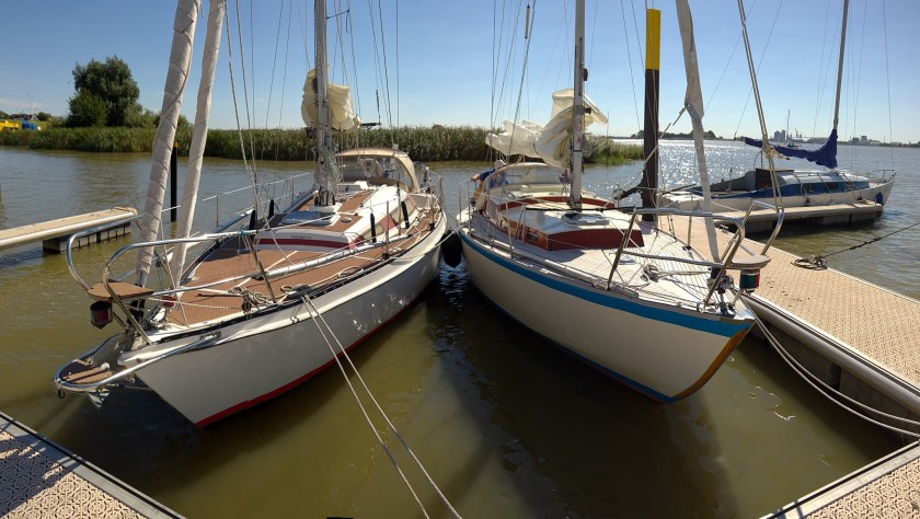 Die erste Tagestour ist auf der Weser absolviert. Im Bild sieht man Swantje einträchtig neben der Manta von Gert in Sandstedt liegen.