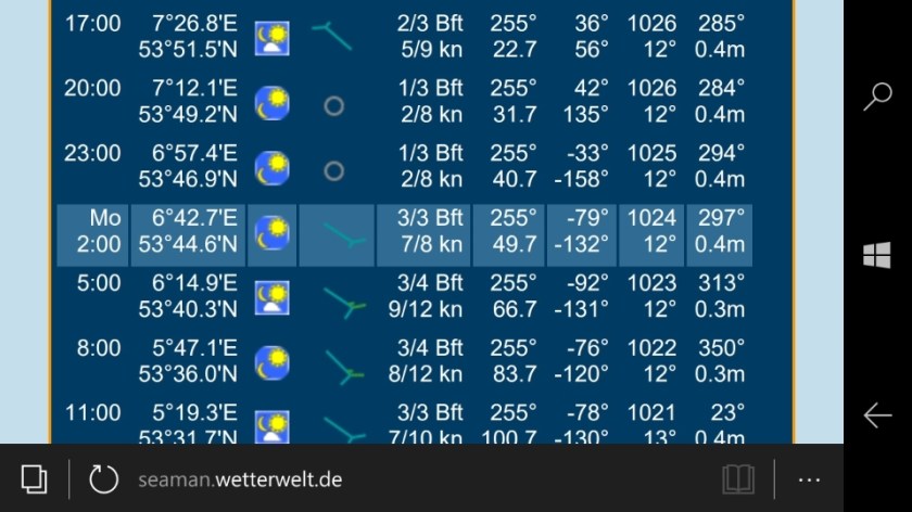 Nach unserer Rechnung müssten wir dann Montagabend mit dem HW bei Oudeschild auf Texel einlaufen.