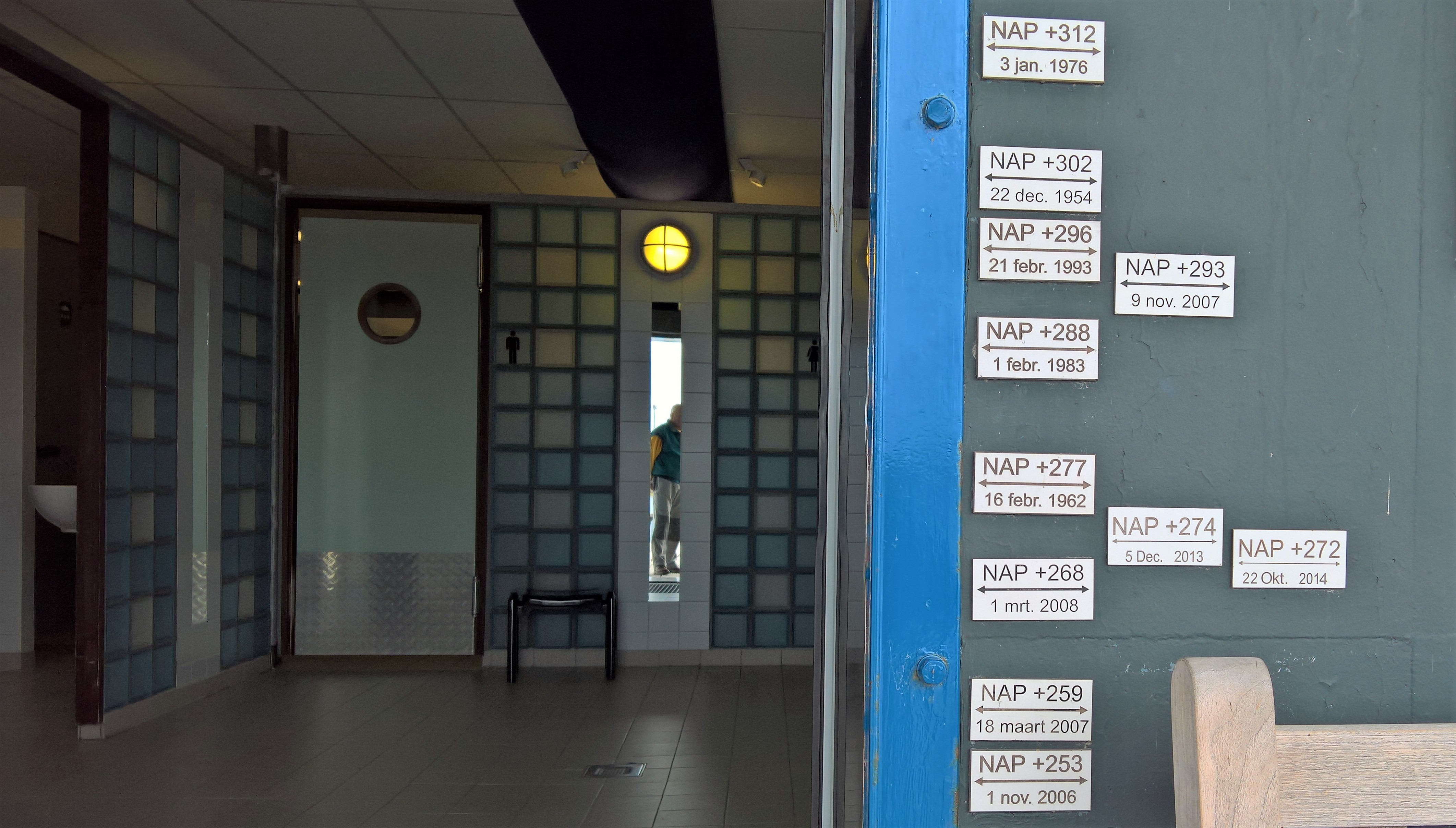 Der unverhoffte 2. Hafentag lässt uns Zeit, ausgiebig das Hafenumfeld zu erkunden. Jetzt sehen wir auch am Eingang zum Sanitärraum die Hochwassermarken mit beachtlichen Werten.