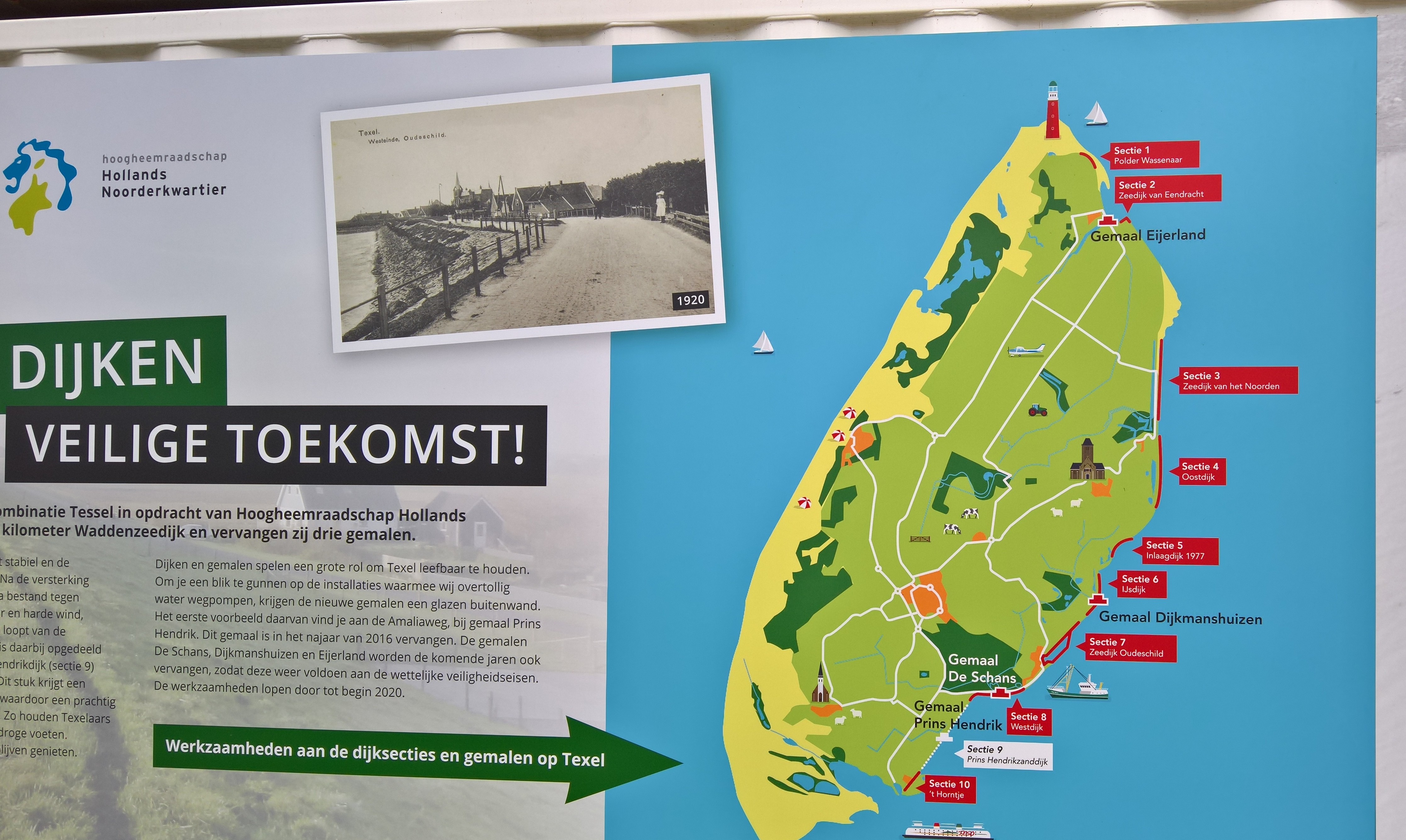 Gegen Stürme und den global ansteigenden Meerespegel müssen gerade die Niederländer einiges unternehmen. So stößt man auf der Landseite von Texel auf umfangreiche Deichbaumaßnahmen.