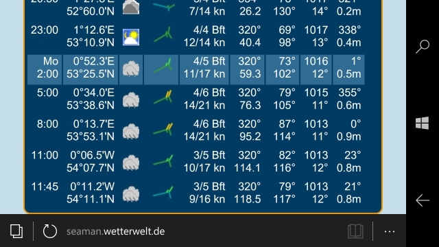 Dort sind wir allerdings auch durch ein Tidefenster eingeschränkt: Für den Hafen brauchen wir mindestens halbe Tide Wasserstand. Falls wir das bis ma Montag 22:00 nicht schaffen, werden wir vermutlich bis Newcastle durchlaufen (dann 200 sm).
