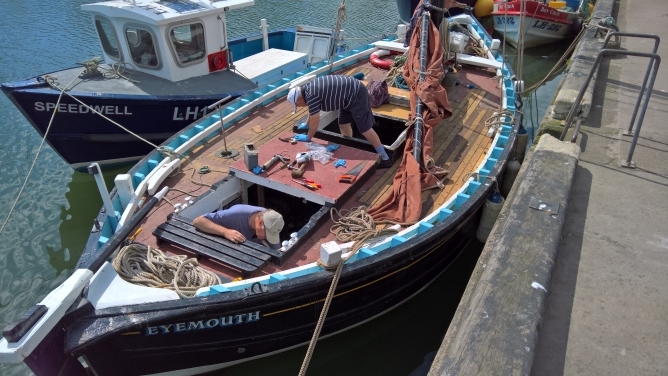Nach dem Lt Farne Island gings weiter platt vor Laken im Schmetterling Stil. Am späten Nachmittag schlief der Wind leider ein, so das wir unter Ausnutzung des Tidedestromes mit Motorhilfe auf Eyemouth zu brausten.
