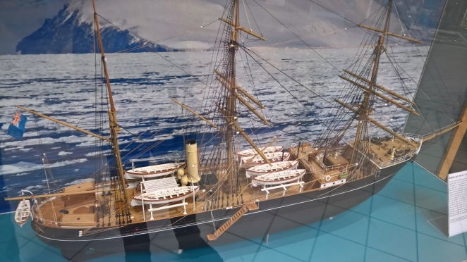 Mit ihr wurde unter dem Kommando von Robert Falcon Scott und einer mutigen Crew, der auch Ernest Shackleton angehörte eine wissenschaftliche Reise in die Antarktis unternommen, mit zweijährigem Aufenthalt dort unter extremsten Bedingungen: Temperaturen bis -45 Grad C, Blizzards, Frostbeulen, Schneeblindheit.