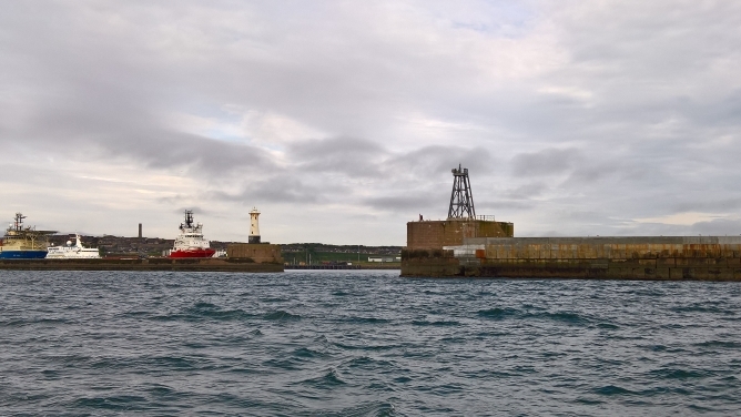 Samstag fing zunächst gut an. Bei Sonnenschein legten wir um 08:10 in Peterhead ab, um das knapp 40 sm entfernte Whitehills im Moray Firth an dessen Ende Inverness liegt, zu erreichen. Bei achterlichem Wind machten wir unter Grß und Fock mit dem nord ziehenden Strom ordentlich Fahrt, hatten den LT Rattray Head an Bb, und rundeten bereits gegen 12:00 den Lt Kinnaird Headbei Fraserburgh. Nun gings die Küste in westl. Richtung entlang hinein in den Moray Firth. Was dann passierte, haben wir noch nicht oft erlebt. Zahlreiche Böenwalzen mit mehr als 30 kn fetten über Swantje hinweg und zwangen zu immer neuen Segelmanövern. Trotz relativer Landnähe baute sich durch Gegenstrom ein häßlicher Seegang auf. Vollwaschgang für Swantje und Crew. Die letzten 3 sm sind wir zum Hafen Whitehills motort. Die sehr enge Hafen einfahrt war aufgrund der Beschreibung gut auszumachenund anzusteuern. Der Hafenmeister stand sogar auf der Mole und wies uns zum Gästeponton ein. Vom Hafenflair der Ortschaft waren wir voll begeistert und wären gern noch einen Tag geblieben.