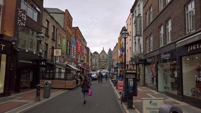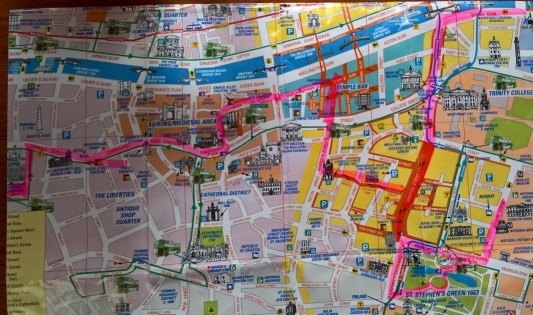 Die Innenstadt erhält ihre Struktur durch das Kreuz aus dem Fluß liffey und der Hauptachse O´Connel Street mit der Verlängerung Grafton Street (Fußgängerzone).