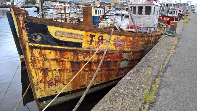 Der fischereihafen hat seine Blütezeit augenscheinlich bereits hinter sich. Bis auf ein paar kleine noch in Betrieb befindliche Fischereiboote, gibt es einige Schiffswracks dort zu sehen. Aber auch die 24 h besetzte Lifeboatstation mit einem Rettungskreuzer.