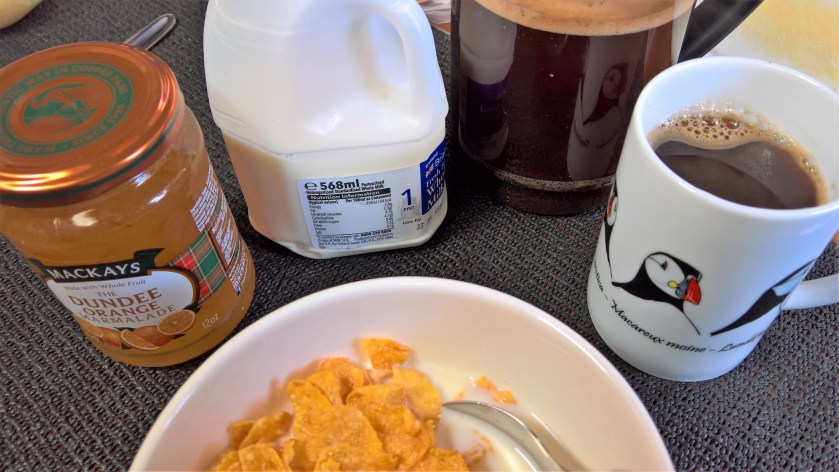 Ausgiebig Zeit zum Frühstücken haben wir bis incl. Sonntag ja jetzt genug.