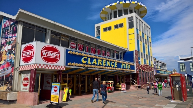 Zunächst die Clarence Pier – ein typisch englisches Amüsier-Center.