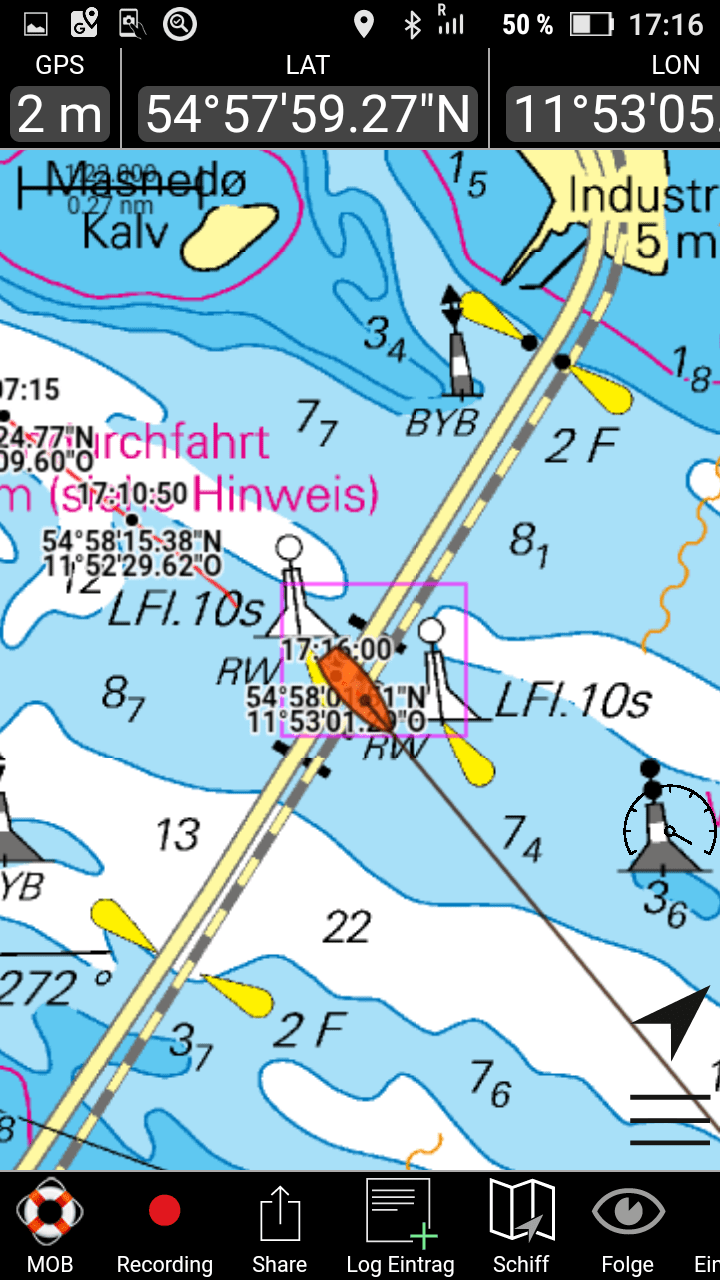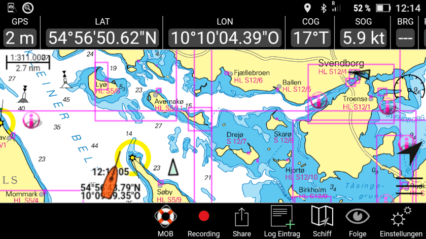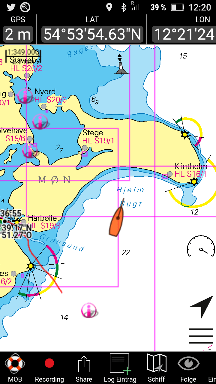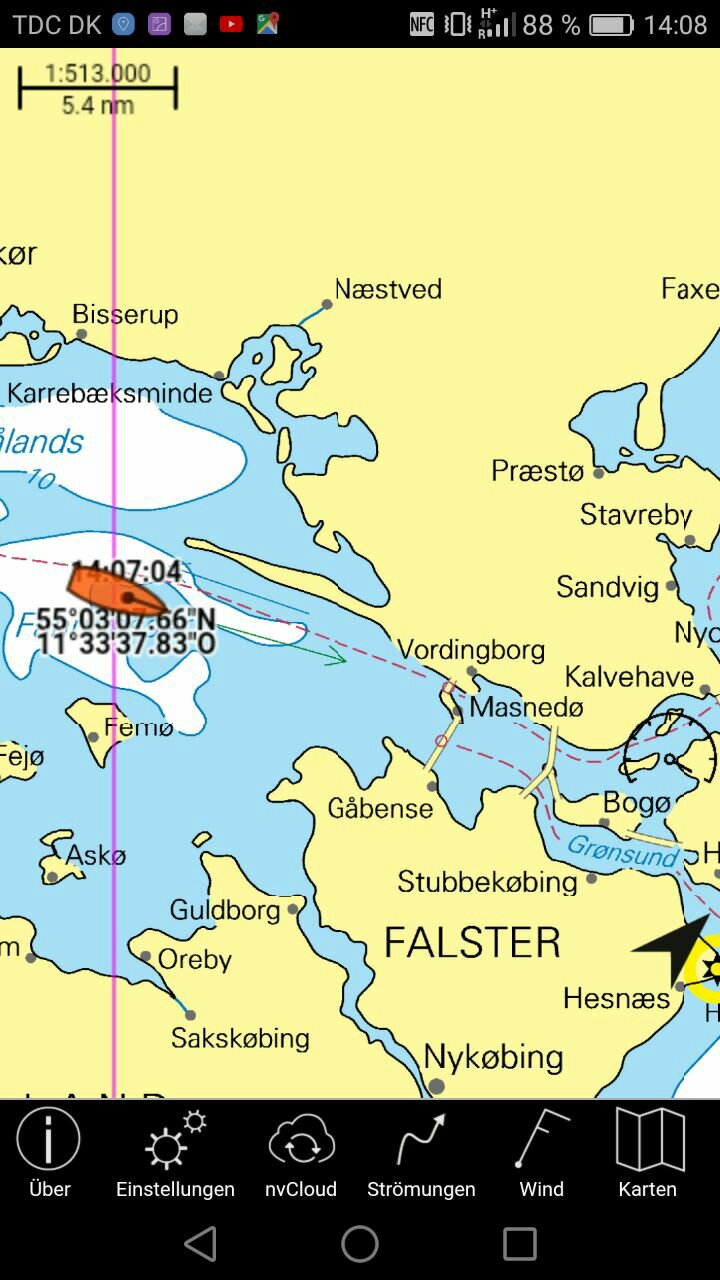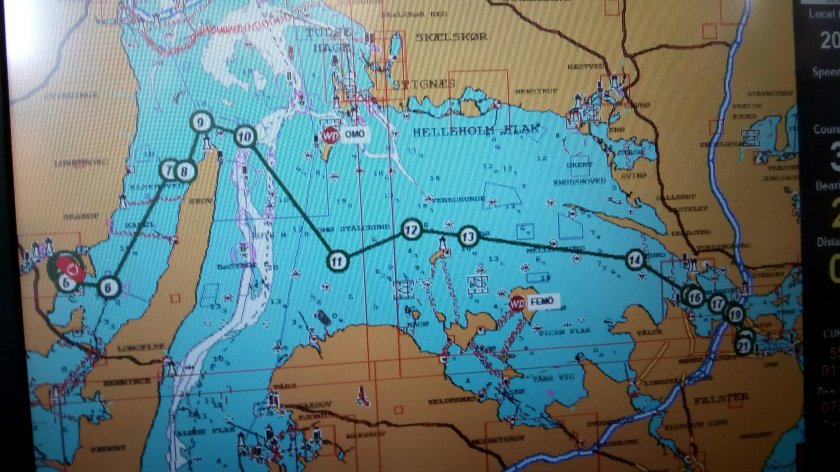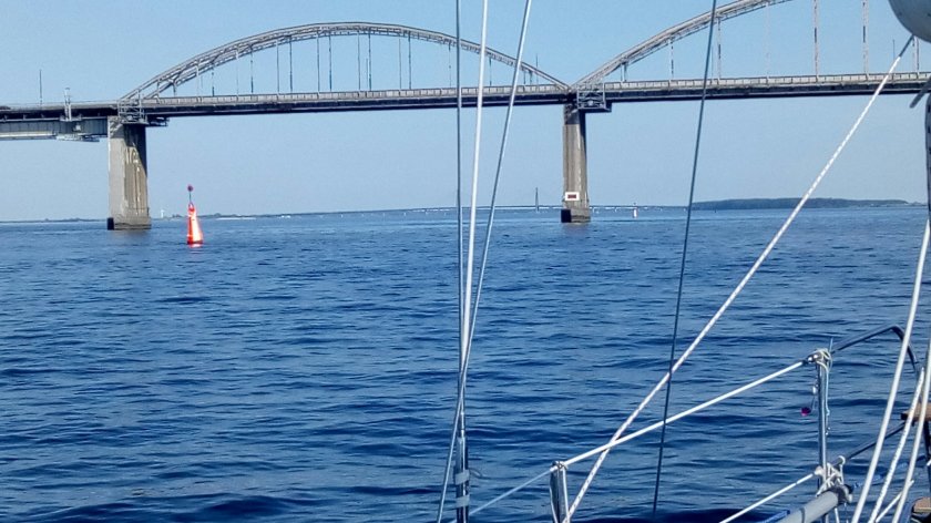 Am nächsten Tag dann ein ganz länger Schlag: Rundung der Nordspitze Langeland und dann hinein in den Grønsundzu einem Ankerplatz kurz vor Stubbekøbing (60 am).Erfreulicherweise könnte ich ab Femö bis zur 1. Brücke den Genakker einsetzen.