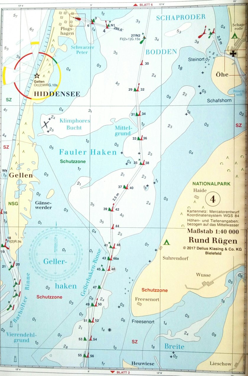 Ab Schaprode war der Weg dann wieder neu für mich. Hier östlich von Hiddensee sind ausgedehnte Wasserflächen, die allerdings sehr flach sind und praktisch nur in der dicht betonten Rinne befahren werden können.