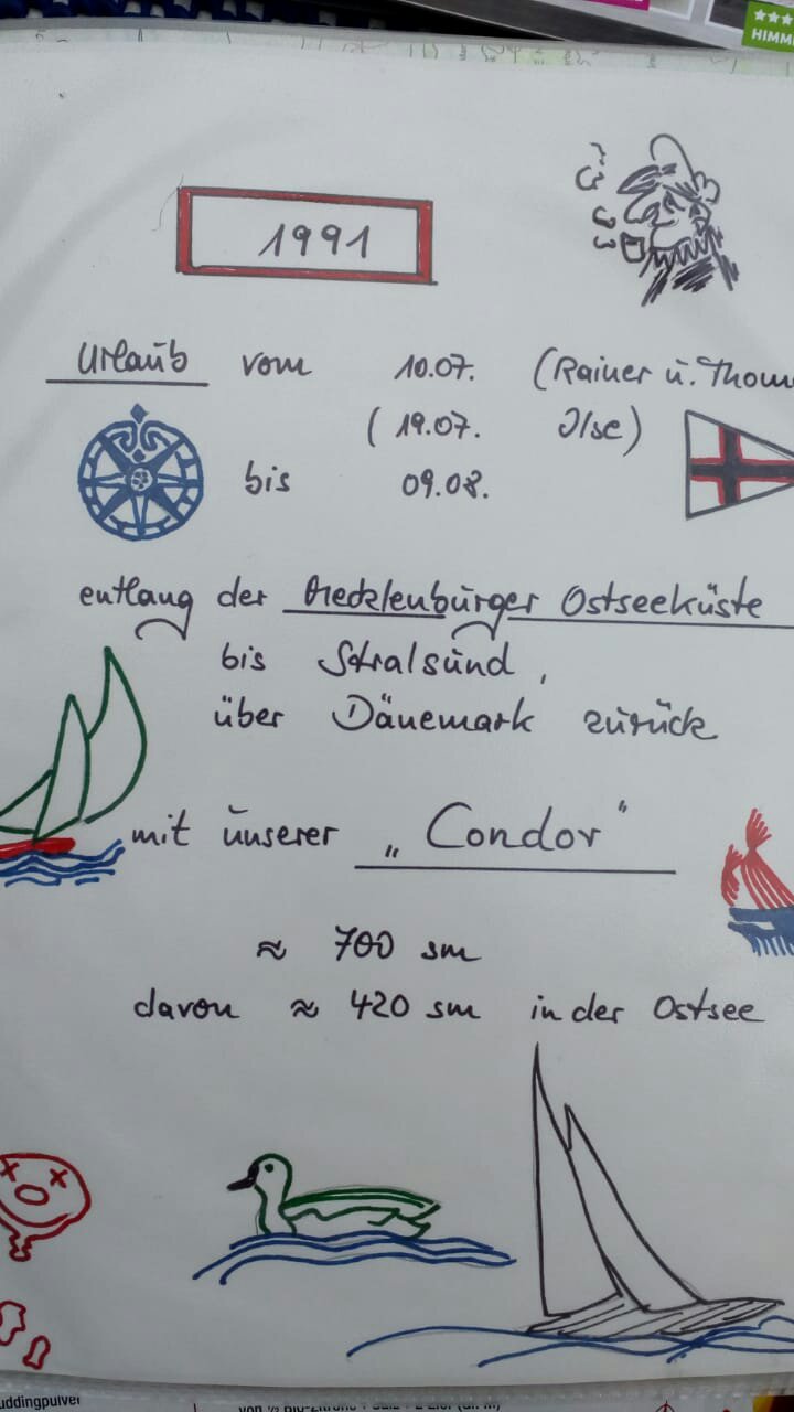 Schon 1991 waren wir kurz nach der Wende mit unserem damaligen Boot „Condor“ in Stralsund. Sohn Thomas mit an Bord: Familientörn.