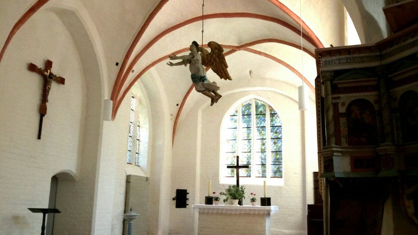 Die Kirche gefällt uns , lichtdurchflutet und mit kleinem Orgelwerk.