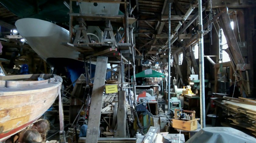 Ein Highlight war der Besuch der Bootswerft Freest. Wie auch in Arnis werden hier Holzboote restauriert. Wir konnten beobachten, wie eine Planke in Heißdampf biegsam gemacht und dann in einen Schiffsrumpf eingefügt wurde.