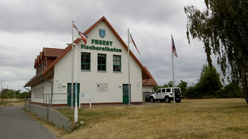 In Freest dürfen wir Dank der Bekanntschaft von Michael mit dem Hafenkapitän im dicht belegten Fischereihafen liegen.
