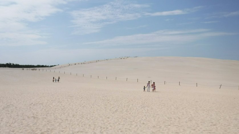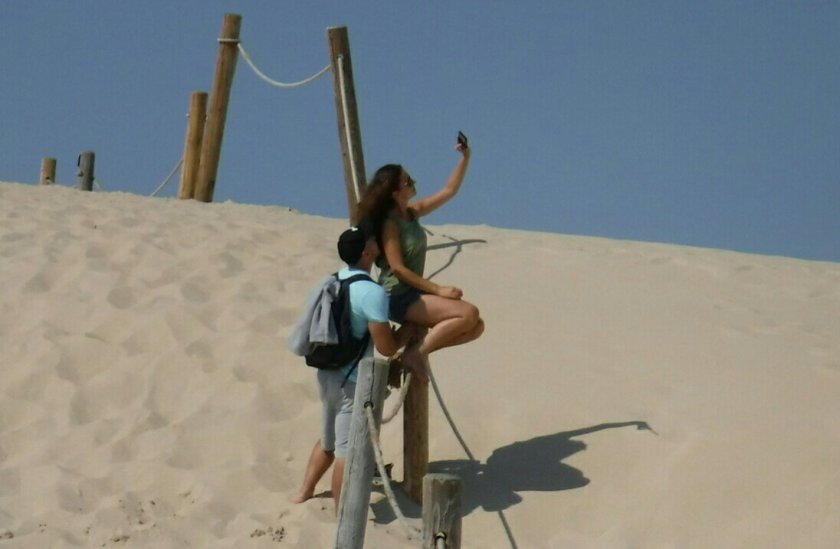 Man ist erstaunt, wie schwer es fällt im feinen Sand die höchste Erhebung zu erklimmen. Aber der Ausblick lohnt. 2008 war ich bereits einmal hier. Auch Ilse ist überwältigt. Die damals gezeigten Bilder konnten die Atmosphäre natürlich nicht rüberbringen.
