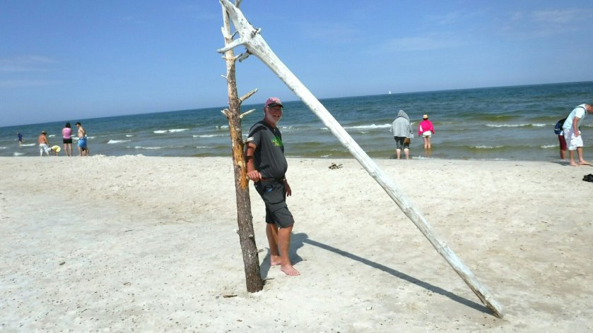 Wir nehmen beide noch ein Bad im Meer. Man könnte den ganzen Strand nach Leba zurück laufen. Aber wie bekommen wir dann die Räder wieder?