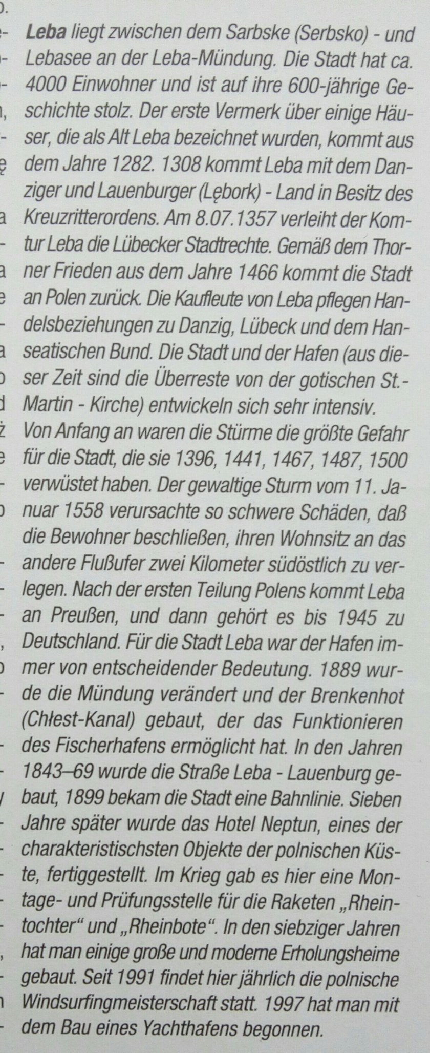 Unser Campingplatz in Leba liegt günstig an der Zufahrt zum Slowinski-Nationalpark, seit 1977 UNESCO-Biosphären-Reservat wegen der Vielfältigkeit von Fauna und Flora. Die Wanderdünen bilden eine einzigartige und überaus schöne Wüstenlandschaft, die sehr wechselhaft ist – binnen weniger Stunden kann sich ein neues Gelände-Relief bilden.