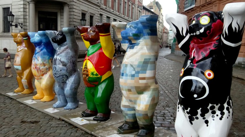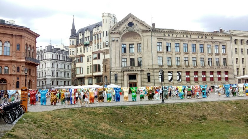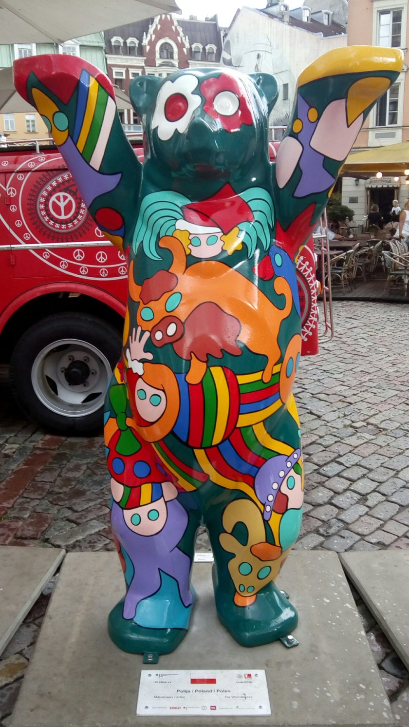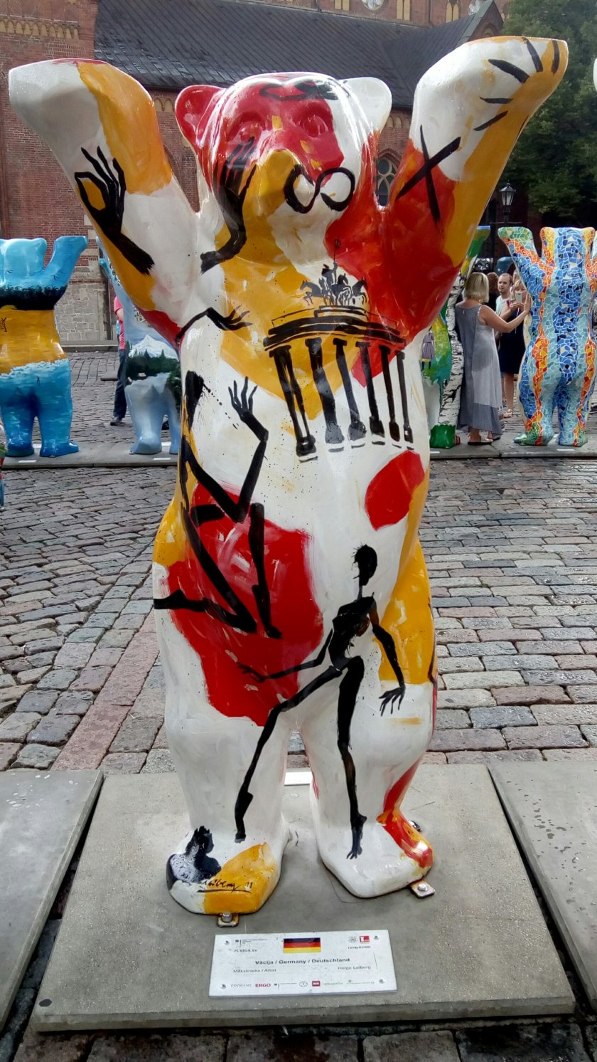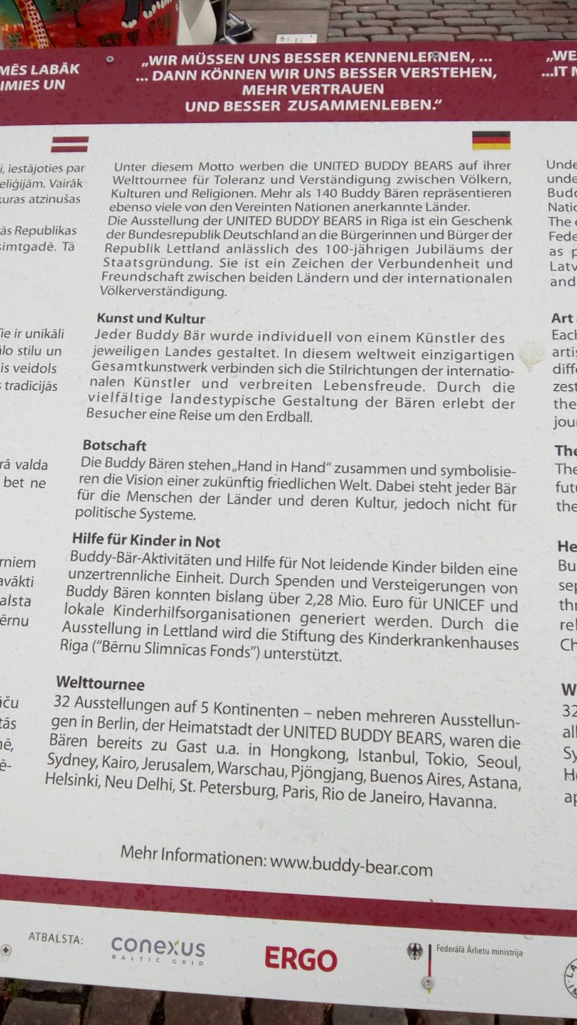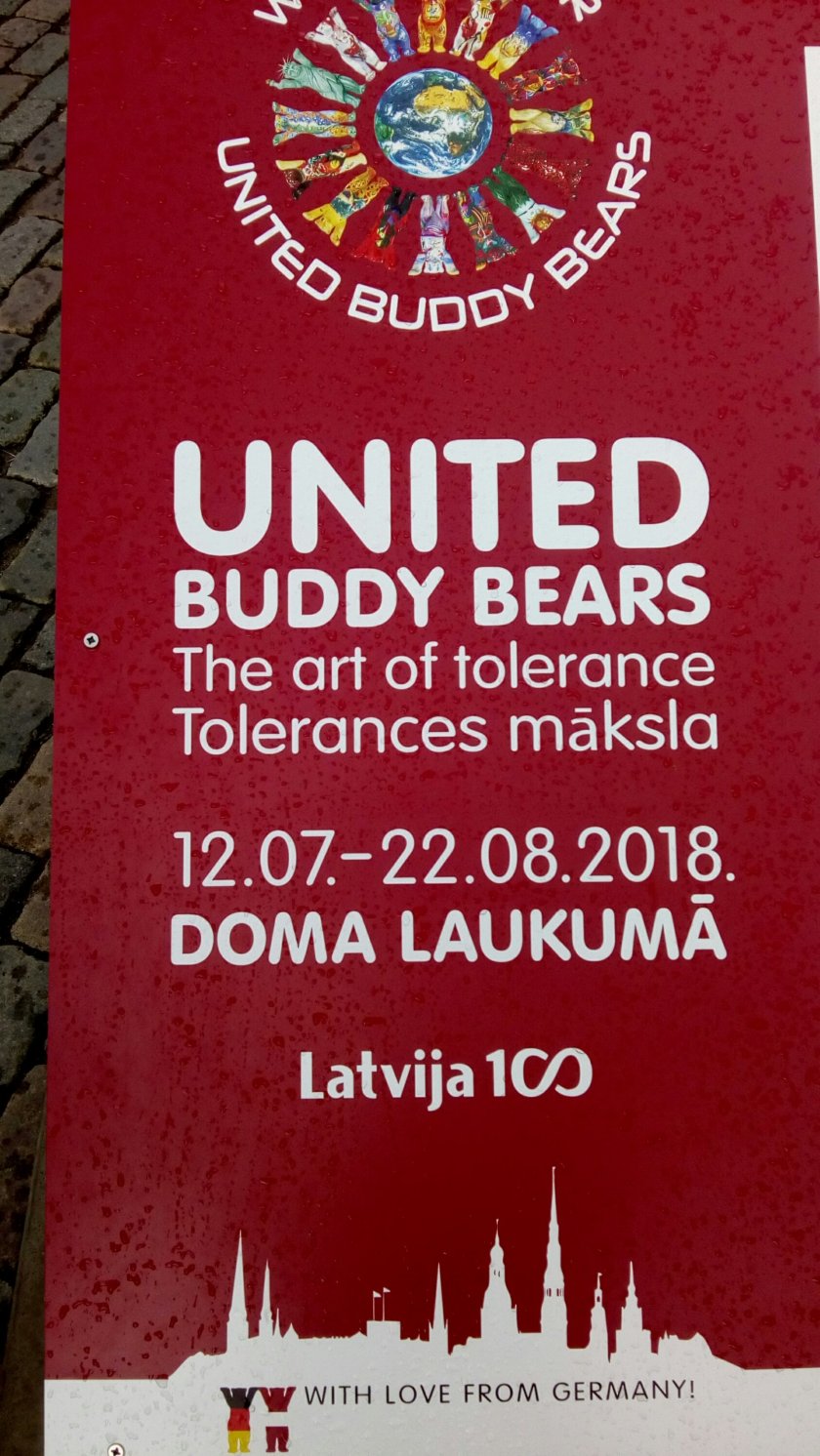 Direkt auf dem Domplatz dann die beeindruckende Ausstellung „United Buddy Bears“ aus Anlass des 100 jährigen Jubiläums der Staatsgründung von Lettland. Wir haben uns natürlich die Bären der von uns besuchten Länder rausgesucht.