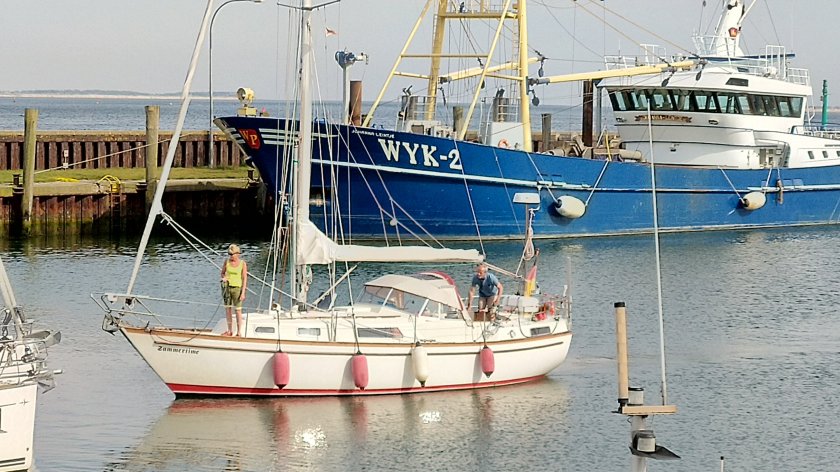 Der Wind war eigentlich zu schwach zum segeln aber die Segel könnten wenigstens einmal gelüftet werden.Zunæcht eng an Amrums Sùdspitze vorbei durch das Kniep Dyp ins Vortrapptief mit der Ansteuerung auf Sylt.Der Hafen von Hörnum ist schõn gelegen und wir finden auf Anhieb 2 gute Liegeplätze für Deep Blue und Swantje.