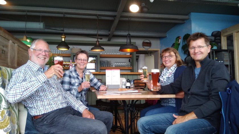 Auf dem schön angelegten Campingplatz empfing uns Mittwoch zunächst Regen. Aber Wilfried und Beate haben uns mit Kaffee in ihrem Chalet verwøhnt.