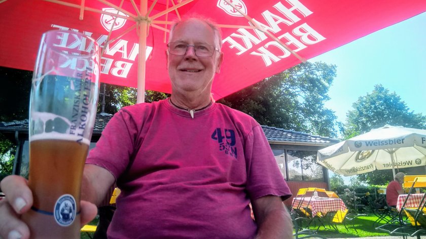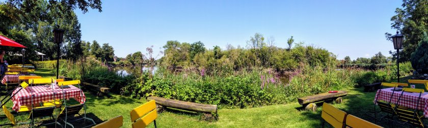 Den Plan mit dem Zug zurück zu fahren, habe ich schon unterwegs aufgegeben. Statt im stickigen Zug zu sitzen, startete ich gleich wieder. Ich leite den Gasthof Dammsiel am Wümme- Deich als nächstes Ziel. Das passte perfekt. Um 12:00 -gerade geöffnet- traf ich im Apfelgarten am Gasthaus ein. Frisch gebratene Pfifferlinge, ein Weizenbier und der Blick auf die Wümme – schöner könnte es gar nicht sein.