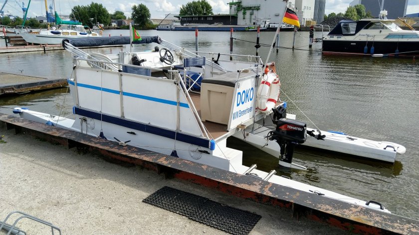Letzten Samstag folgten einige Boote der Einladung unseres Motorbootwartes zu einem Törn nach Rechtenfleth. Es konnte das Hermann-Allmers-Haus besichtigt werden. Das hörte sich interessant an und ich fuhr auf dem Von Hannes selbst konstruierten und gebauten Motor-Cat (zwei Tornado Rümpfe) mit.