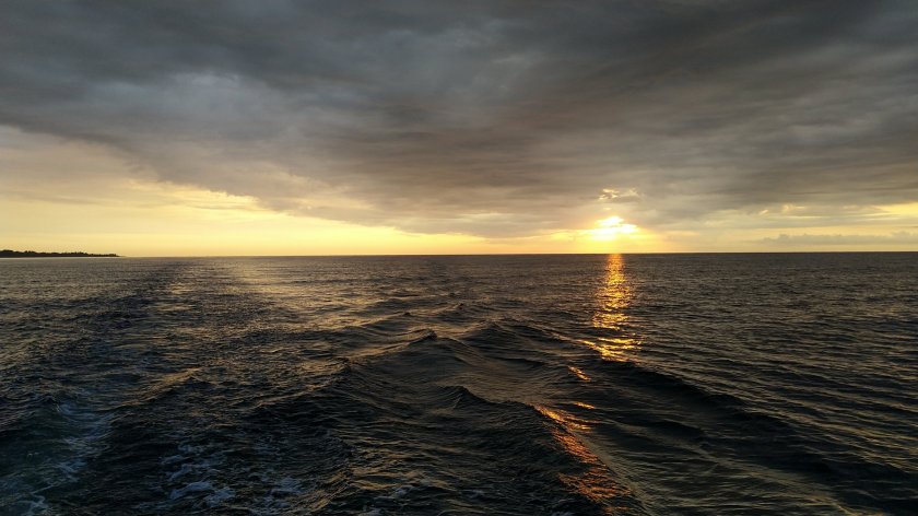 Die bleiernde See und das Himmelspanorama mit der aufgehenden Sonne war eindrucksvoll.