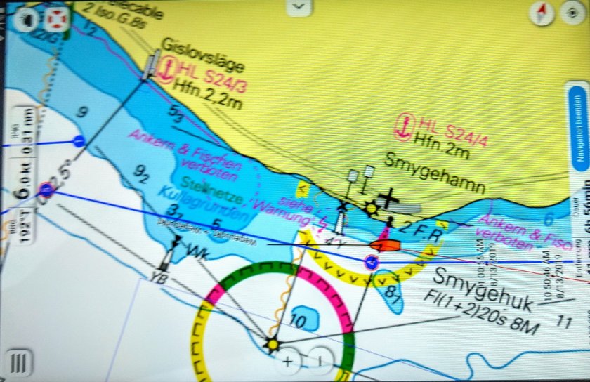 Heute morgen sind wir um 05:15 bei spiegelglatter See in Simrishamn ausgelaufen. Auch andere Bootsbesatzungen nutzten die Gunst der Stunde nach dem gestrigen Starkwind.