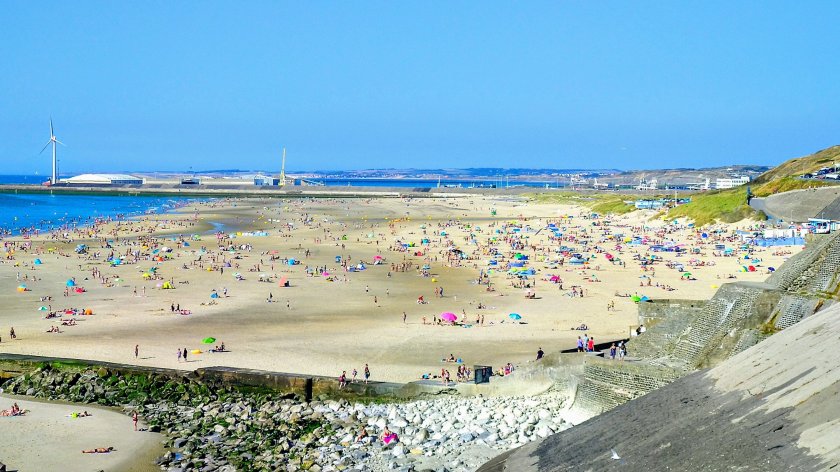 Wegen einer Autobahnsperrung fanden wir auch nicht den Weg nach Ostende und dann an der Küste entlang, sondern es ging Richtung Gent durchs Landesinnere – ein gehöriger Umweg. Hinter Kortrijk dann der Grenzùbertritt zu Frankreich und die Autobahn Richtung Dunkerque und Calais. Dort passierten wir den Eingang zum Eurotunnel. Die abwechslungsreiche leicht hügelige Landschaft in Frankreich gefiel uns, auch wenn uns ein ca. 50 km langer Stau auf der Autobahn zu schaffen machte. Gut das Sonntag war und alle Lkw eine Zwangspause einlegen mussten.