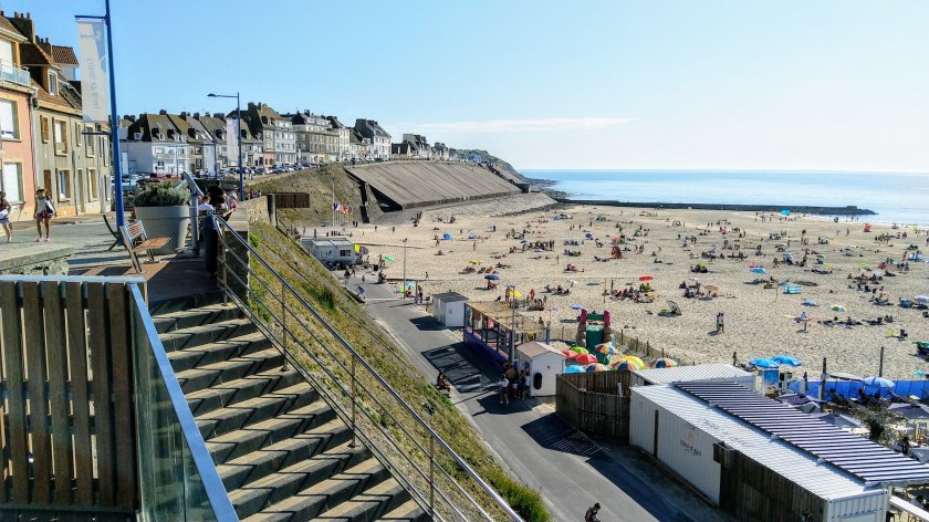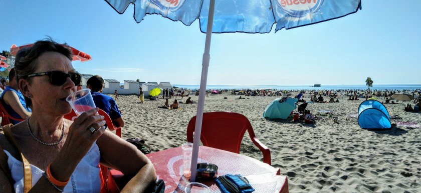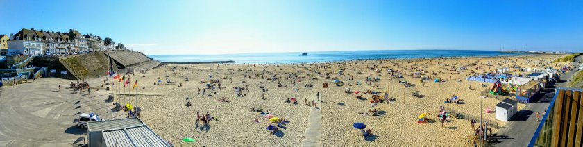 Unseren Wohnwagen konnten wir auf dem Cap d’Alprech mit herrlichem Blick auf die Bucht abstellen. Gegen 15:00 bei Niedrigwasser tobte hier das volle Badeleben.