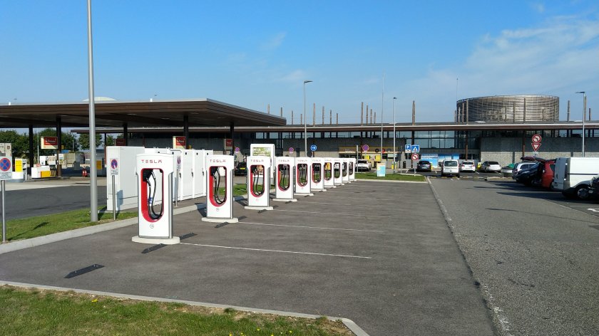 Und auch der technische Fortschritt hat hier Einzug gehalten. Riesige Ladestationen für Tesla und andere E-Autos.