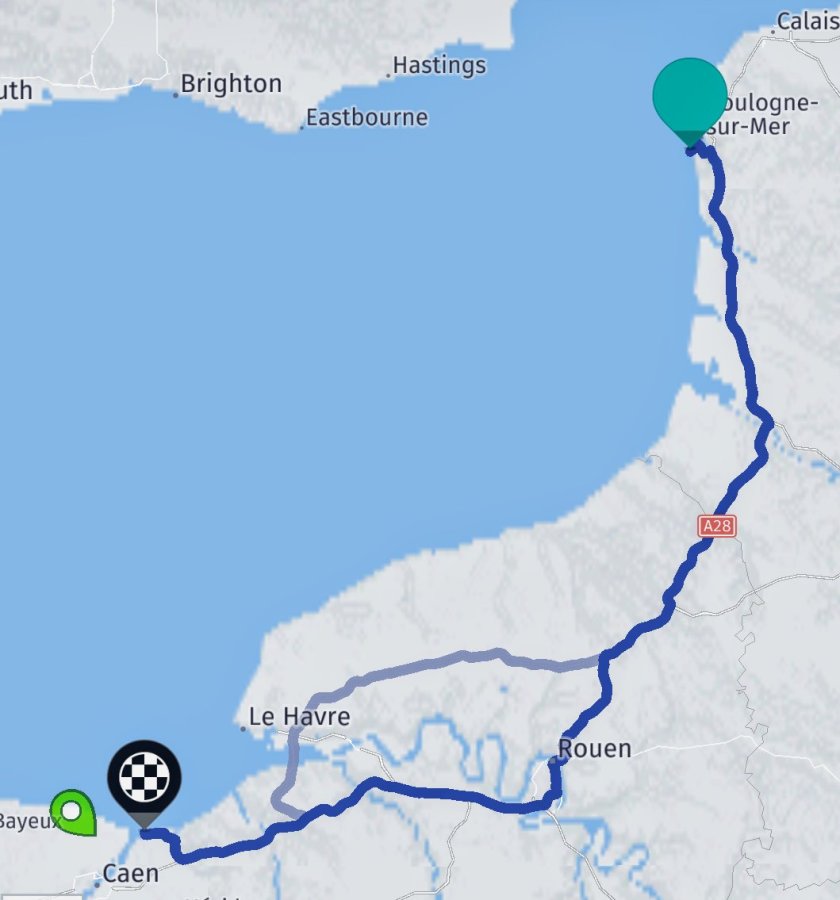 Gegen 09:00 in Boulogne-sur-Mer gestartet ging’s ohne Zwischenfälle auf der A28 sûdwärts.