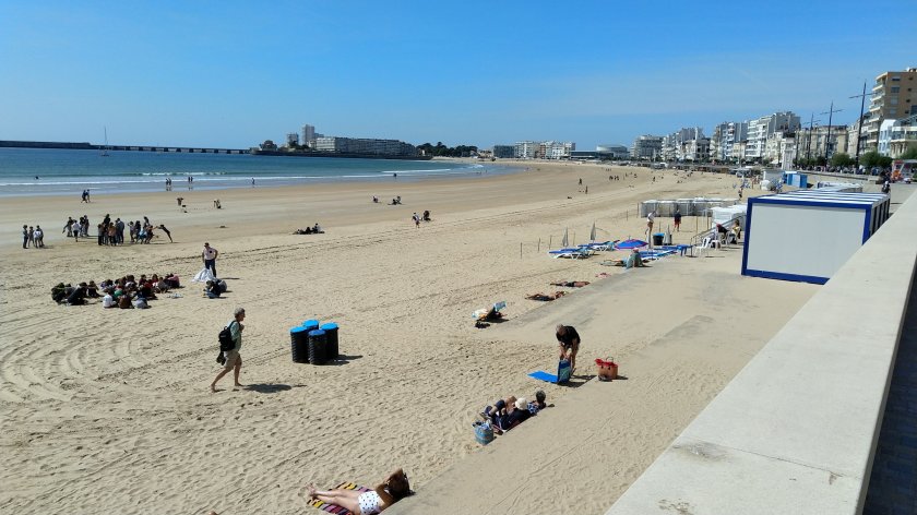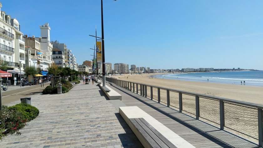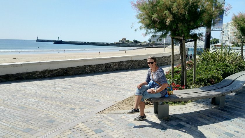 In les Sable d’Olonne angekommen, erstmal nach 20 km am Anfang der Strandpromenade verschnaufen.