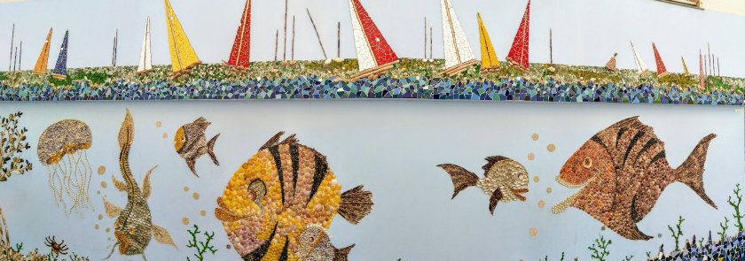 In einer Seitenstraße entdecke ich ein schönes in die Hauswand eingelassenen Muschelmosaik.