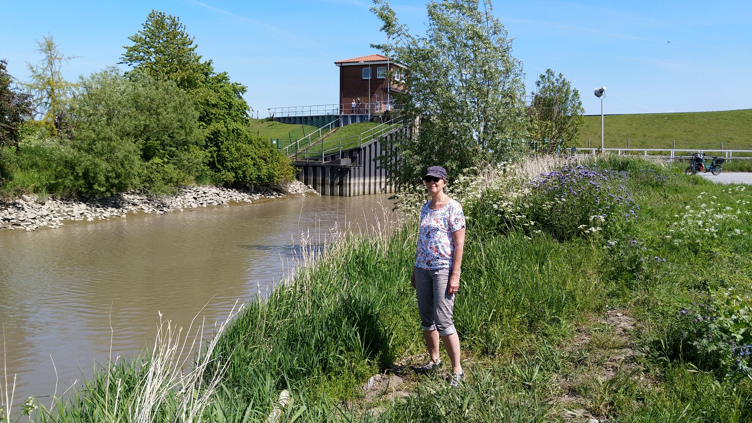 Ilse und ich wollten einfach ausnutzen, das von Krautsand aus in nördlicher Richtung gesehen die Brücke beim Sperrwerk Wischhafen von 10:00 bis 12:00 passierbar war und wir so weiter am Elbdeich entlang radeln konnten.
