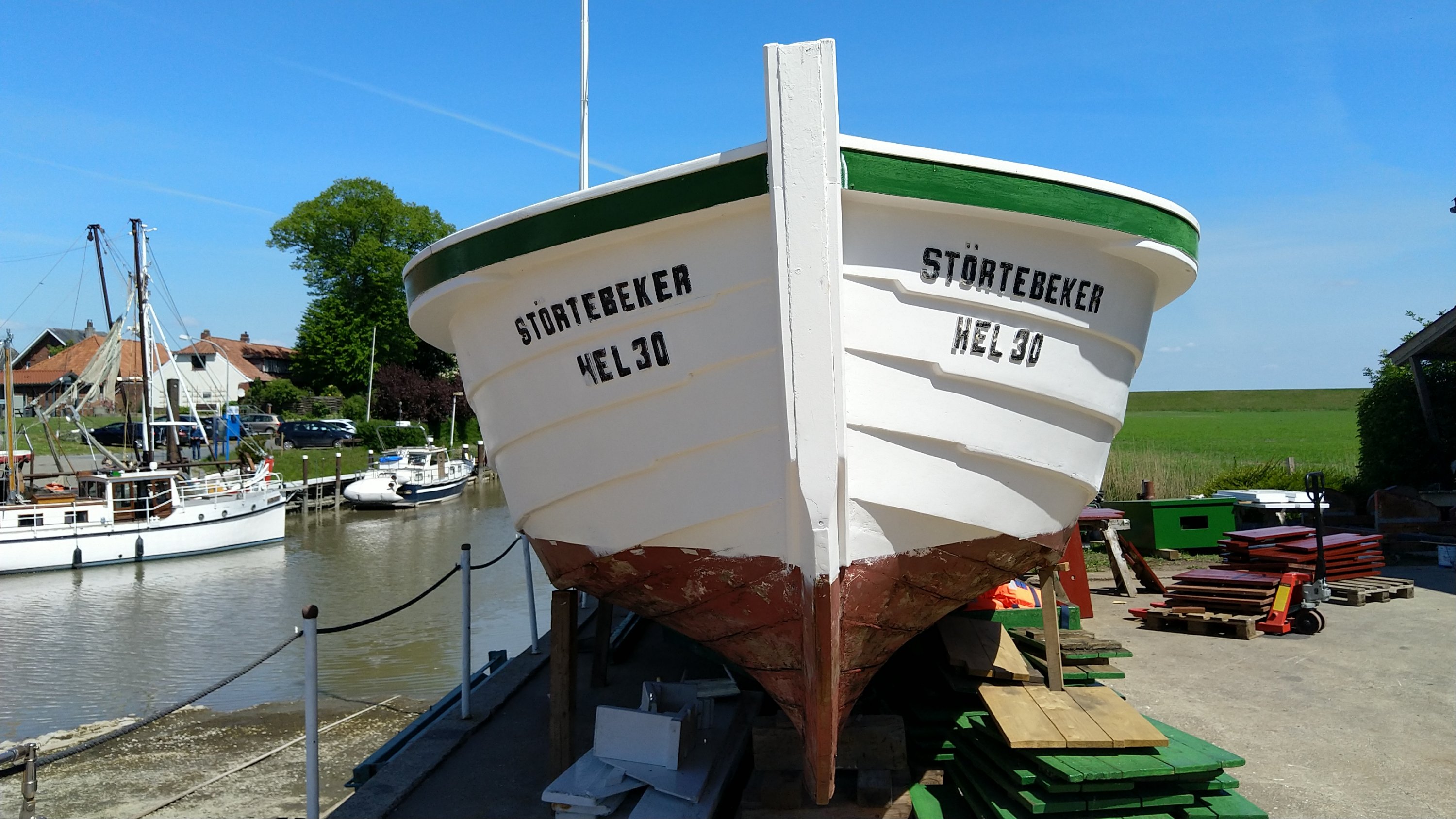 Und dann kam auch heraus: Dies ist die Geburtsstätte der meisten Börteboote, die auf Helgoland ihren Dienst beim Ausbooten der Passagiere versehen. Die Rettungsboot-Werft in Drochtersen ist Verwandschaft