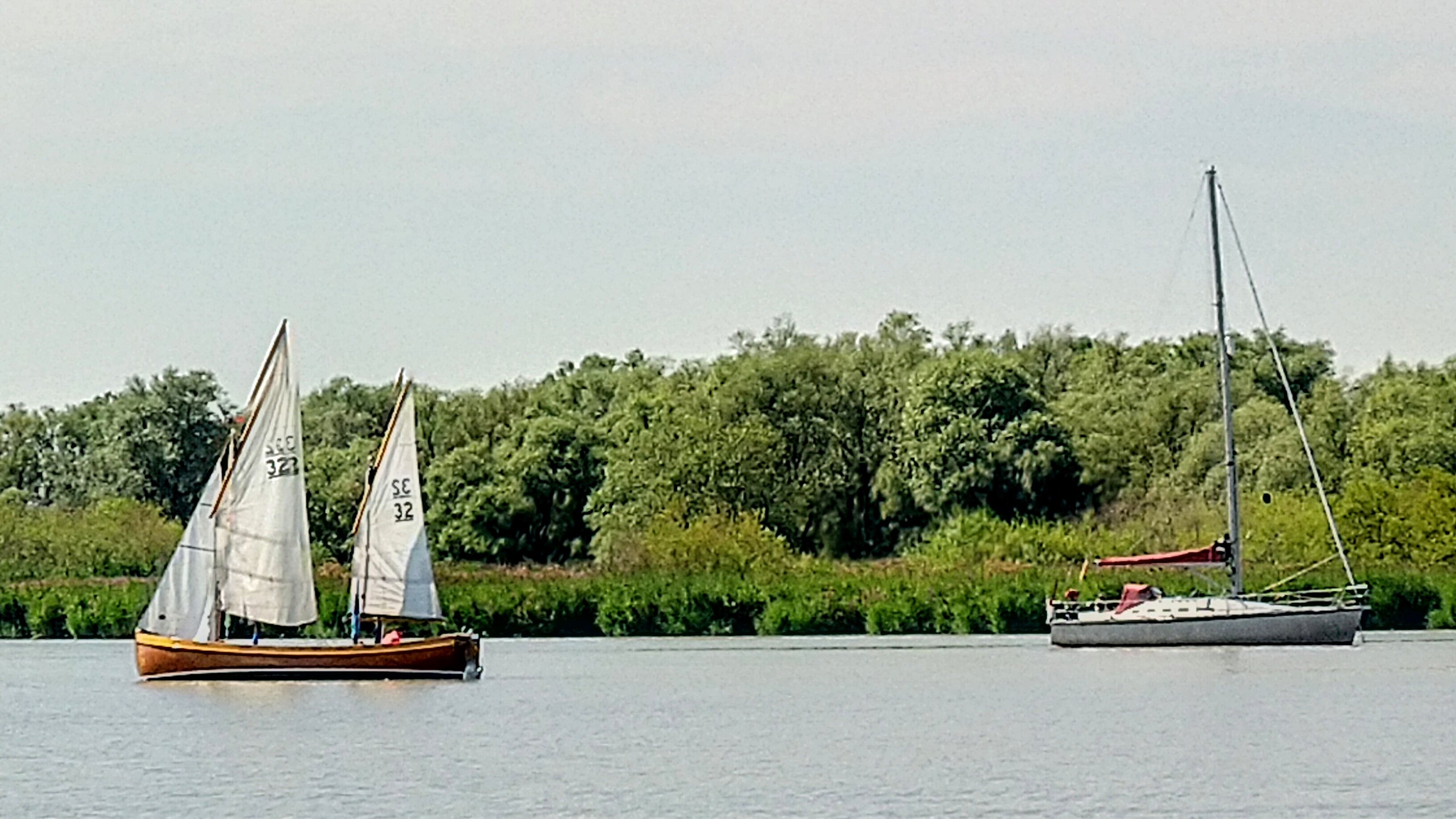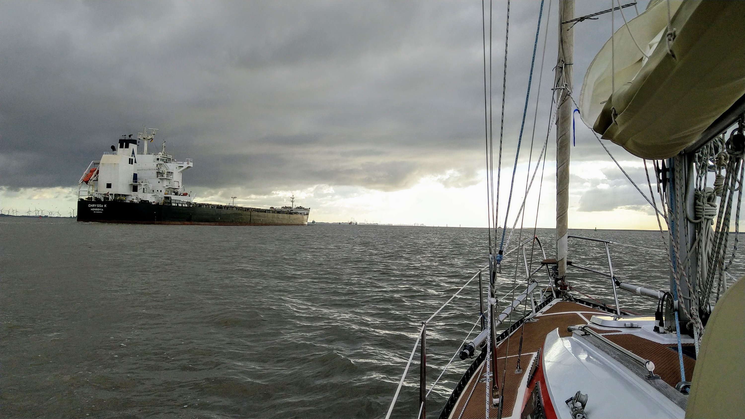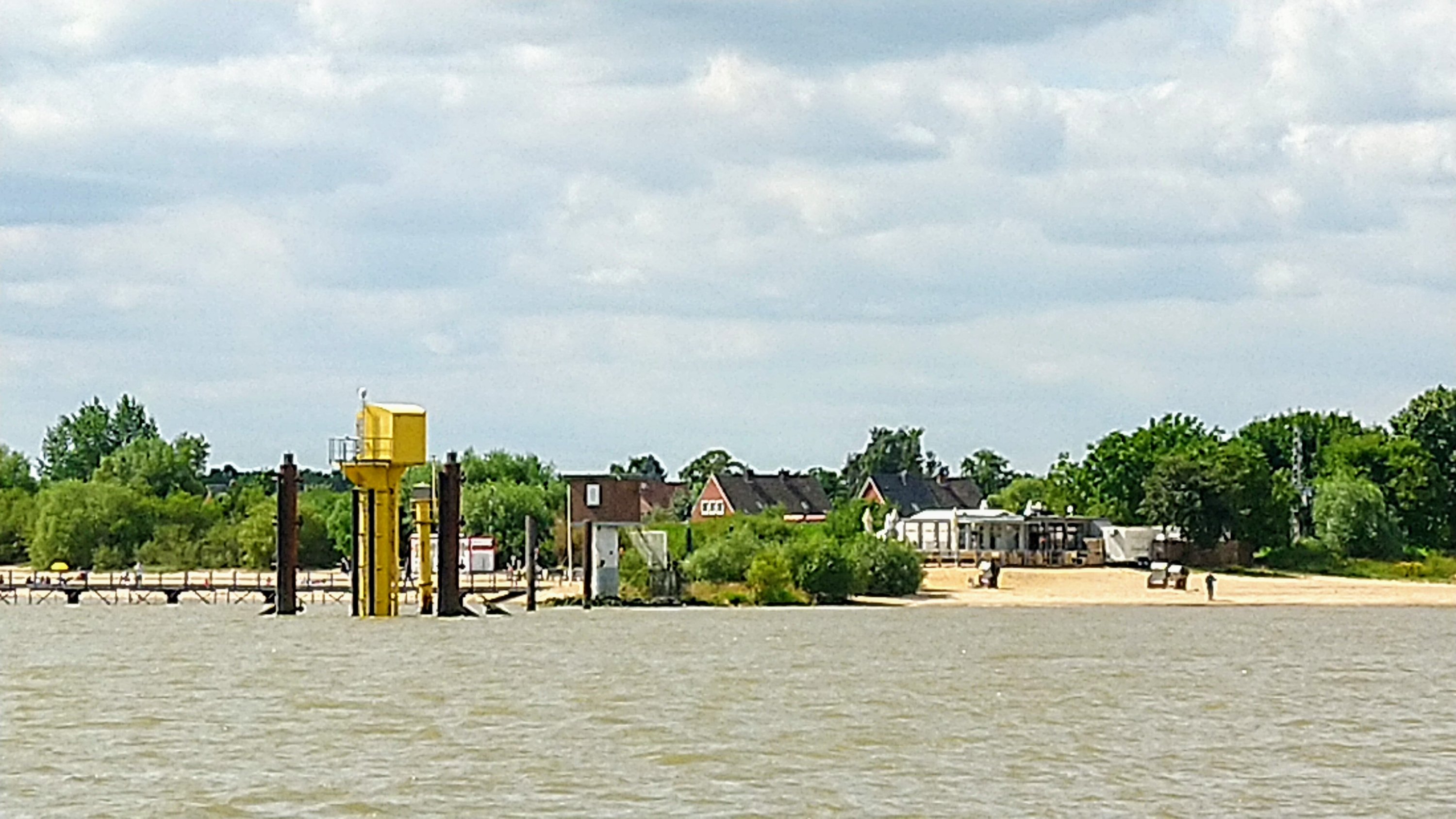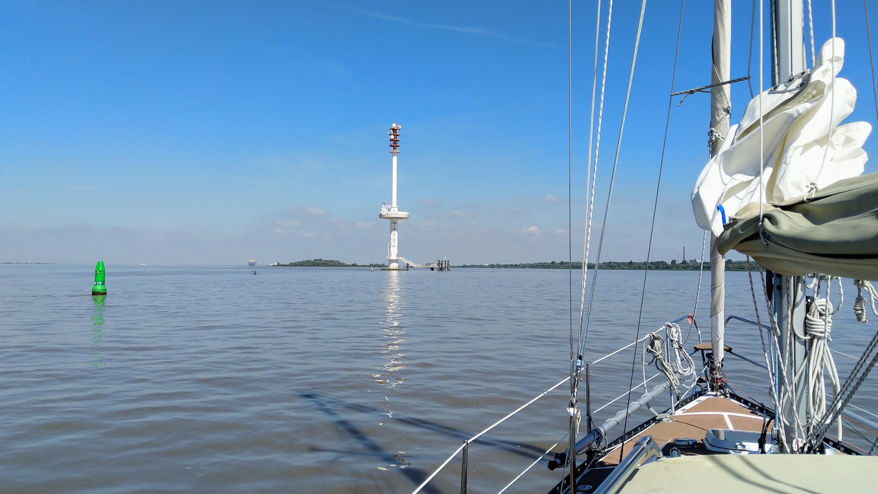Wir wollten den Weg auf der Elbe ganz geruhsam zurücklegen und zogen nur die Fock hoch. So konnten wir die Szenerie auf der Elbe gut begucken. Als Ziel für diesen Tag hatten wir den Ruthenstrom kurz hinter Krautsand ausgeguckt.