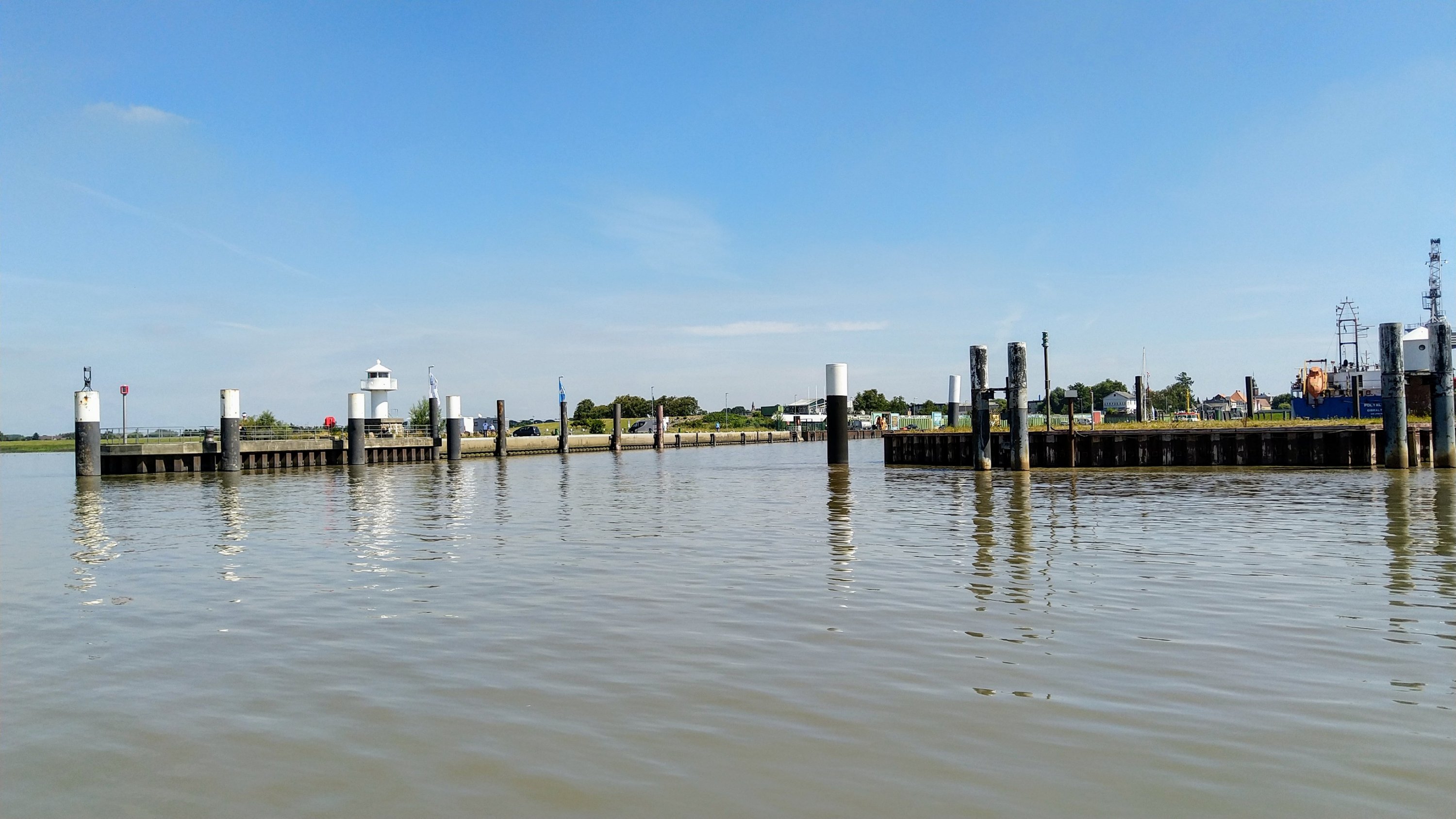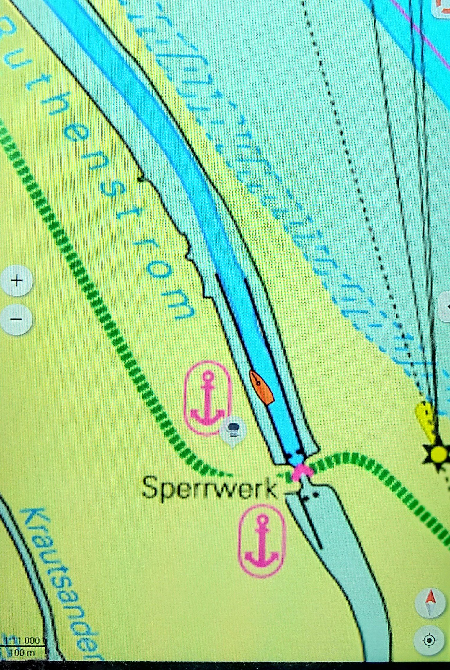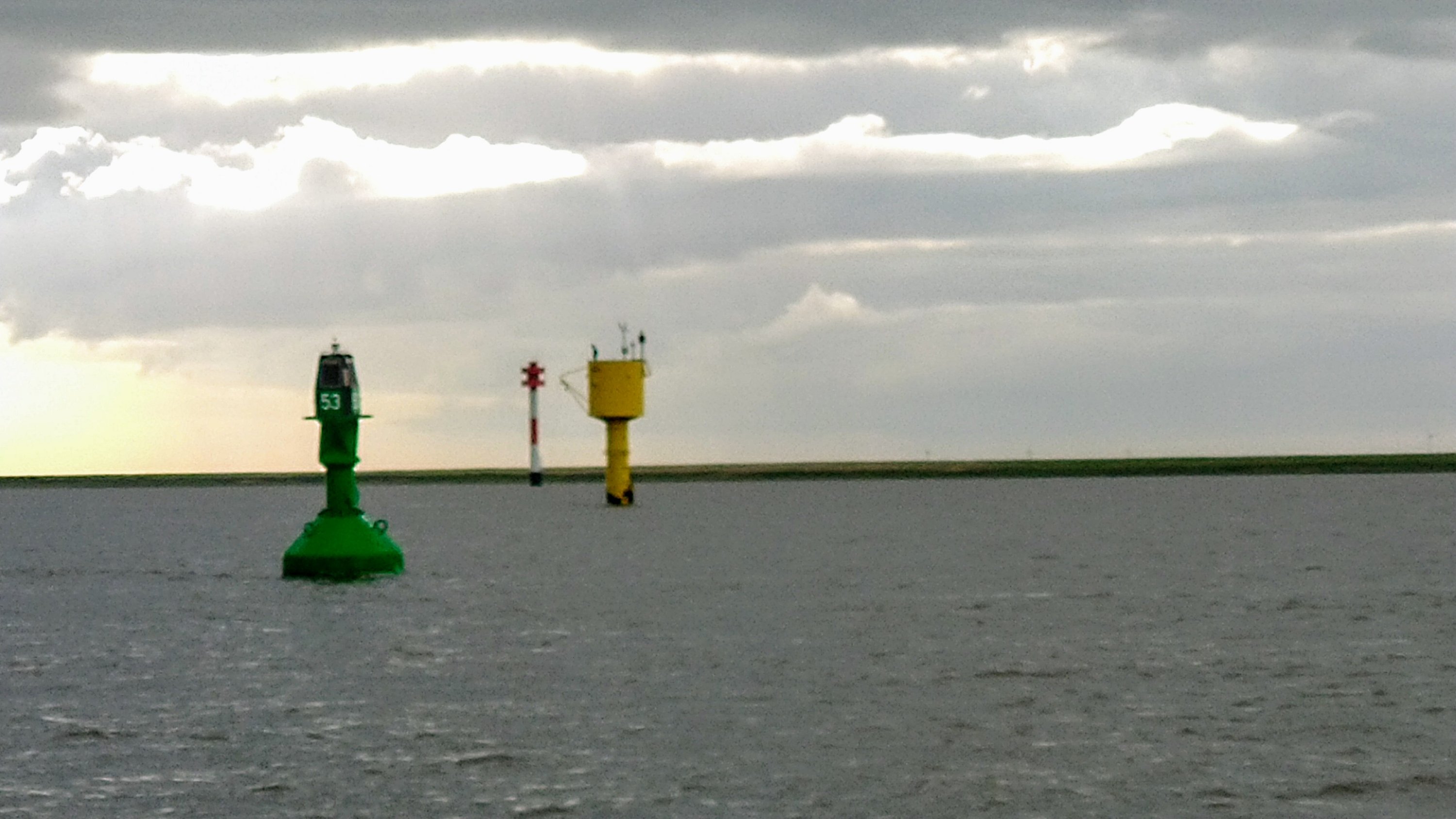 So viel es uns auch nicht schwer Donnerstag gegen 07:30 aus der Oste auszulaufen. Zunächst ein Schock: das Sperrwerk war für die Schifffahrt geschlossen und einiges Nachblättern in unseren Unterlagen verhieß nichts Gutes.